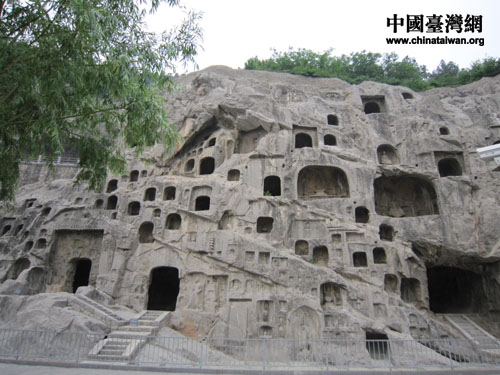 從遠處眺望石窟,更覺壯美異常。(中國臺灣網 朱毅 攝)