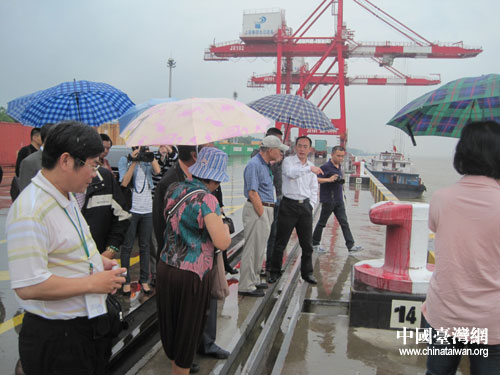 參訪團(tuán)在九江出口加工區(qū)港口參觀。圖片來(lái)源:江西省臺(tái)辦