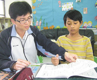 屏東縣獅子鄉(xiāng)草埔小學內(nèi)文分班學生邱瑞杰,本學期成了該校唯一學生,少了玩伴常悶悶不樂。圖為導師和他“一對一”上課。來源:臺灣《聯(lián)合報》