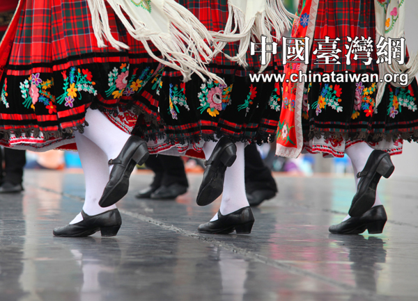 6月11日,來自保加利亞的Trakia歌舞團,在上海世博園歐洲廣場為游客表演民族歌舞。女舞者身著色彩鮮艷的民族服裝,跳著輕快的舞步。(中國臺灣網 田云鵬 攝)