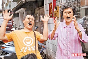 “笑長(zhǎng)”陳萬(wàn)火帶罹癌的媽媽陳李絨每天大笑養(yǎng)生,有時(shí)還會(huì)戴小丑鼻娛樂(lè)媽媽。來(lái)源:臺(tái)灣《蘋果日?qǐng)?bào)》
