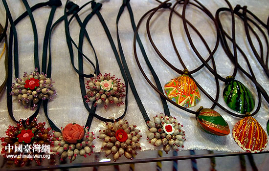 圖為第三屆海峽兩岸文博會臺灣文創展區展出的,用植物種子制作成的臺灣少數民族手工藝品。(中國臺灣網 張弛 攝)