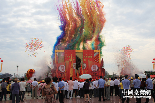 中國臺灣網6月19日漳州消息 開漳圣王陳元光塑像今天下午在漳州市人民廣場落成。漳州市有關部門的領導,參加第二屆海峽論壇·開漳圣王及其部屬后裔回漳謁祖的直航臺灣嘉賓,參加第二屆國際開漳圣王聯誼大會的嘉賓,漳州市開漳圣王宮廟和陳元光后裔,及漳州市各界群眾,共約1000人,一起見證了陳元光塑像的落成典禮。
