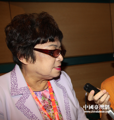 在廈門參加第二屆海峽論壇的臺灣“人民最大黨”主席許榮淑接受記者采訪。(中國臺灣網(wǎng)肖燕攝)