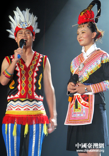圖為身著少數民族服裝的晚會主持人。(中國臺灣網 張碩 攝)