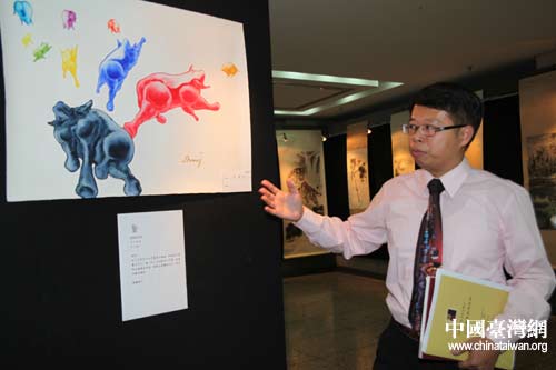臺灣畫家蔣麟介紹自己的作品(中國臺灣網 李典典攝)