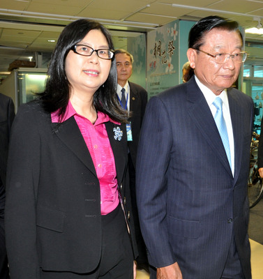 臺灣海基會董事長江丙坤(右)率代表團(tuán)于28日8時30分許由桃園機(jī)場乘機(jī)飛往重慶,將與海協(xié)會會長陳云林舉行兩會恢復(fù)制度化協(xié)商后的第五次領(lǐng)導(dǎo)人會談。