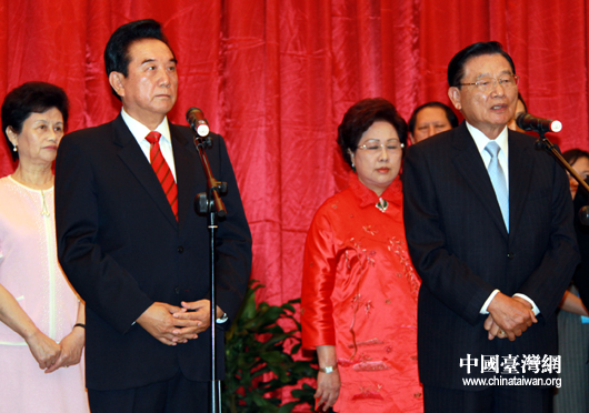 6月28日中午,江丙坤率領(lǐng)的;鶗(huì)協(xié)商代表團(tuán)一行抵達(dá)下榻的酒店,海協(xié)會(huì)會(huì)長陳云林在酒店歡迎。圖為江丙坤致辭。(中國臺(tái)灣網(wǎng)發(fā) 王珂 攝)