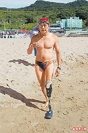 “獨腳鐵人”阮錦源勇奪長泳冠軍。圖片來源:臺灣《蘋果日報》