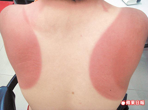 一男子穿著背心在烈日下騎車,導(dǎo)致背部被嚴(yán)重曬傷。圖片來(lái)源:臺(tái)灣《蘋果日?qǐng)?bào)》