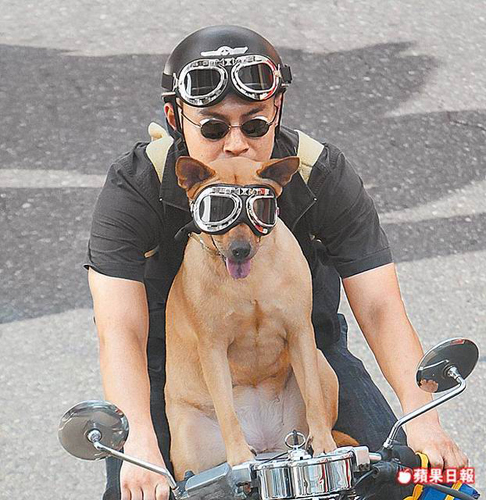 臺(tái)北市昨天高溫達(dá)攝氏37.1度,有外出民眾甚至為愛犬戴太陽(yáng)眼鏡。圖片來(lái)源:臺(tái)灣《蘋果日?qǐng)?bào)》