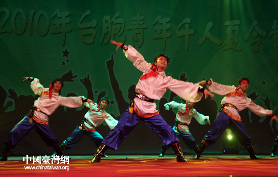 6日,全國臺(tái)聯(lián)2010年臺(tái)胞青年千人夏令營在北京舉行開營儀式。圖為大陸高校青年獻(xiàn)上了精彩文藝演出。(中國臺(tái)灣網(wǎng) 張弛 攝)