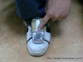臺(tái)灣一男子在鞋面黏上有攝影功能的手機(jī),鎖定穿短裙的女子進(jìn)行偷拍裙下風(fēng)光情事。圖片來(lái)源:臺(tái)灣今日新聞網(wǎng)