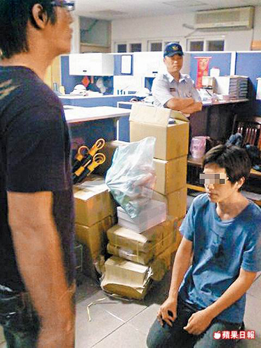臺灣中央大學周姓研究生涉偷拍女子如廁被抓,在警局跪地求饒。圖片來源:臺灣《蘋果日報》