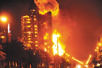 中國臺灣網7月26日消息 據臺灣《聯合報》報道,臺灣臺塑石化旗下的“六輕”重油煉油廠煉油二廠昨晚8點12分因重油外泄引發爆炸,巨大的火勢,遠在數十公里外的云林縣虎尾、斗六都看得到,云林縣消防局預估火勢可能要延燒兩、三天以上,煉油二廠將被迫停工。