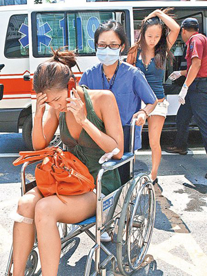 休旅車駕駛馮凌儷送醫(yī)時懊惱地打電話,她的同事李香凝(后)雖也受傷,但仍可步行走進醫(yī)院。來源:臺灣《中國時報》