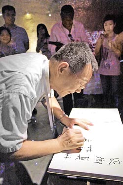 林毅夫最后簽名留念時寫下“家鄉真好”幾個字。記者問他看臺灣館后是不是更想家了,林毅夫默然停頓一會兒,眼眶泛紅,久久說不出話來。(中國臺灣網 陳佳慧)