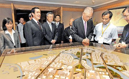 馬英九、吳敦義(右3)及劉憶如(左1)參觀航空城等招商案。來源:臺灣《旺報》
