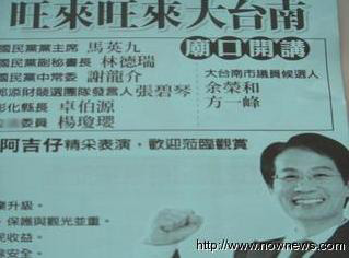 如,國民黨臺南縣佳里黨部書記王宏俊28日一張“旺來旺來大臺南廟口開講”夾報文宣,明日晚上六點半起在佳里小學前造勢活動,主角是該黨的大臺南市長候選人郭添財,還將市議員提名人方一峰、余榮和一并列進去。