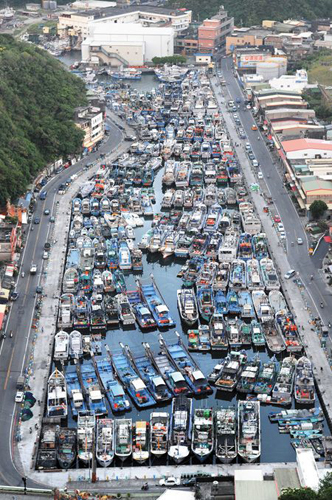 宜蘭縣南方澳漁港早就被進港避風(fēng)的船只擠得是水泄不通。來源:臺灣《中國時報》