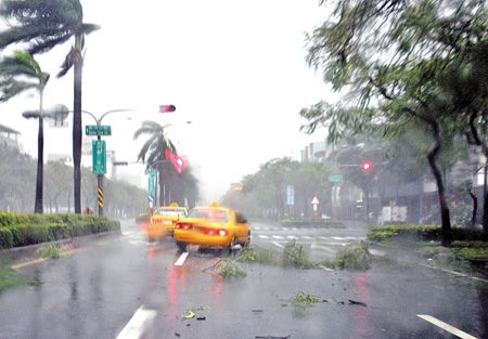 “凡亞比”臺風(fēng)風(fēng)強雨大,造成高雄市區(qū)積水嚴(yán)重,汪洋一片。 來源:臺灣《中國時報》