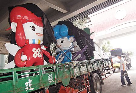 連花博吉祥物,也由貨車運送到濱江街的暫置區(qū)躲避臺風(fēng)。來源:臺灣《中國時報》