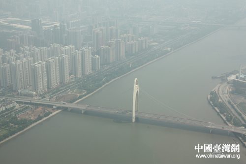 從廣州電視塔頂端俯瞰珠江,沿岸美景盡收眼底。(中國臺灣網 趙輝 攝)