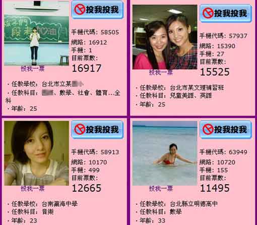 社交網站地圖日記營銷總監廖家欣表示,繼前年成功推出美女老師票選走紅,且今年新聞事件炒熱美女老師話題。所以,今年教師節再推出“超人氣美女老師”票選,只要是各級學校老師、補教、才藝老師都可報名,希望透過網絡票選,讓更多人看到老師嚴厲外表下不為人知的一面。(中國臺灣網 劉海偉)