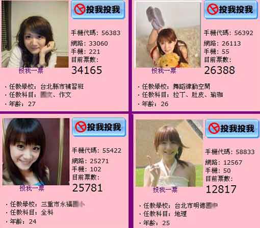 報道稱,昨日,以5000多票暫居第一的李依文,專長為街舞和流行MV舞,在金門大學熱舞社、舞蹈教室教舞蹈;自彰化師范大學信息管理系畢業的李依文因對舞蹈有興趣而選擇教舞,外表亮麗的她笑說,有些男生還會借口學舞接近她。網友John留言:“有如此吸引力的老師,應該沒有學生會打瞌睡了。”網友momo則說:“好想要上你的課喔!”