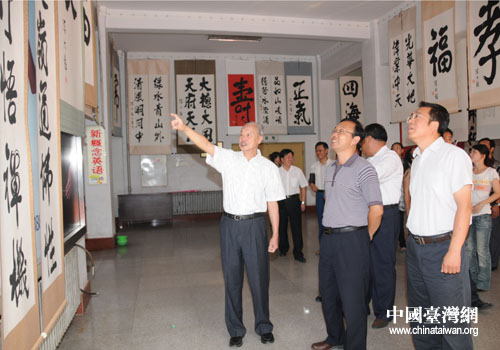 中國臺灣網9月27日北票消息 日前,為慶祝建國61周年,遼寧北票市舉辦“寰宇杯”陳大絡書法展。出自臺灣著名書法大師陳大絡之手的“江山一統”等書法作品充分體現出兩岸同根、同源,都是中華民族炎黃子孫的情懷。