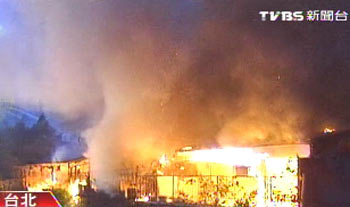 臺北市中山北路二段的一處公寓12日凌晨5點多突然起火。圖片來源:臺灣TVBS電視臺