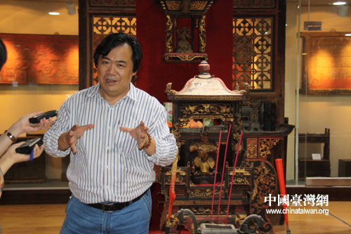 客家民俗博物館館長陶曉俊接受記者采訪(中國臺灣網 陳寧 攝)