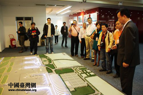 兩岸記者參觀采訪成都市規(guī)劃展,聽取成都規(guī)劃詳情。(中國臺灣網(wǎng) 馬迪 攝)