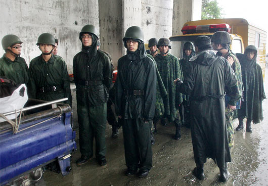 臺灣交通部門全力搶通蘇花公路救援受困人員,臺軍官兵在一旁待命隨時出動。圖片來源:臺灣《聯合報》