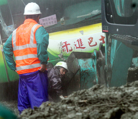 臺風“鲇魚”致蘇花公路嚴重塌方,工程人員22日上午全力搶修道路救援受困的人員 圖片來源:臺灣《聯合報》