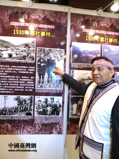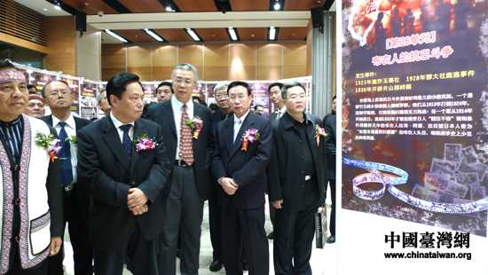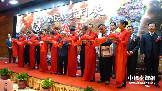 “紀念臺灣光復65周年臺灣少數民族抗日史實圖片展”25日在京舉行,80多位抗日事件親歷者后裔頭目和長老來到現場(中國臺灣網 李徽 攝)