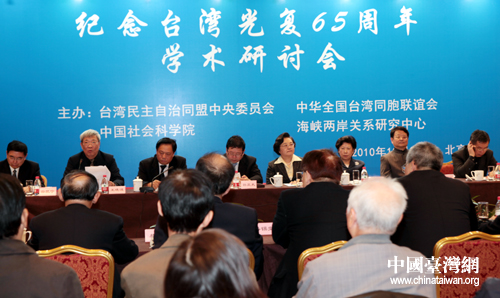 中國臺灣網10月25日北京消息 臺灣民主自治同盟中央委員會、中華全國臺灣同胞聯誼會、中國社科院和海峽兩岸關系研究中心25日下午,共同在北京臺灣會館舉辦研討會,紀念臺灣光復65周年。