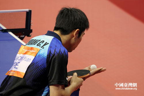 比賽中,莊智淵發球。(中國臺灣網 鐘寶華 攝)