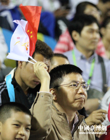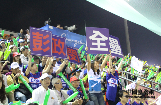 廣州亞運(yùn)棒球決賽吸引了大批觀眾到場觀戰(zhàn)。圖為給中華臺北隊(duì)加油的大陸觀眾。(中國臺灣網(wǎng) 沈鵬 攝)