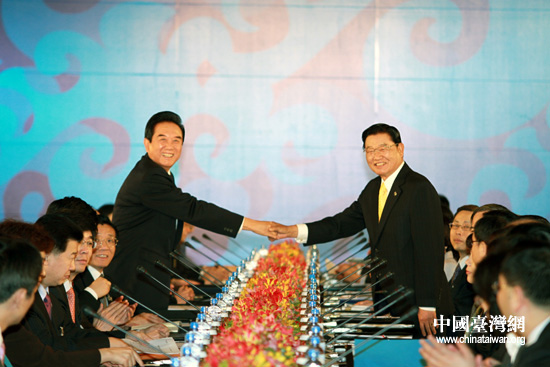 中國臺灣網(wǎng)12月21日臺北消息 兩岸兩會(huì)領(lǐng)導(dǎo)人第六次會(huì)談21日上午9時(shí)在臺北圓山飯店舉行,海協(xié)會(huì)會(huì)長陳云林與海基會(huì)董事長江丙坤在臺北再度握手。(特派記者 鐘寶華)