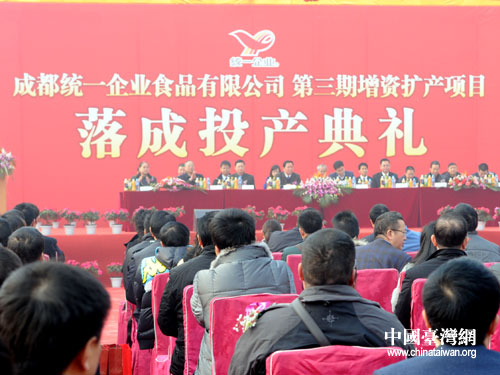 成都統(tǒng)一企業(yè)食品有限公司第三期增資擴(kuò)產(chǎn)項(xiàng)目落成投產(chǎn)典禮現(xiàn)場。圖片來源:四川省臺辦