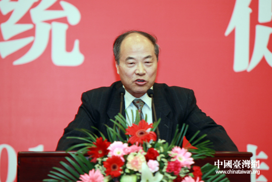 南京大學臺研所所長崔之清代表自己所在小組向大會作報告。(中國臺灣網 鐘寶華 攝)