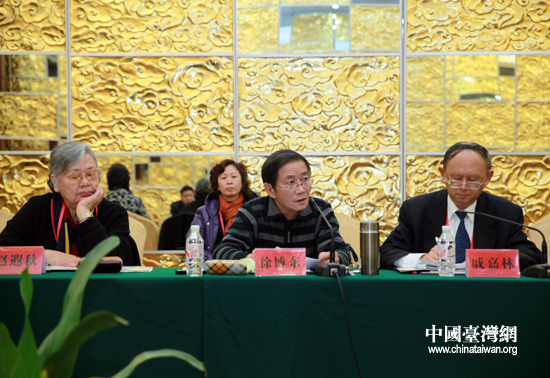 北京聯合大學臺灣研究院教授徐博東(中)在第九屆兩岸關系研討會上發言。(中國臺灣網 鐘寶華 攝)