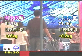 據報道,臺灣健檢中心根據過去3年上門體檢的16萬人次分析得出,臺北女性平均體重54.7千克,比全臺女性的平均體重少了0.6千克,但體脂肪率卻相對偏高。大高雄的男性體重平均71.1千克,比全臺男性平均體重多0.2千克,是最胖的城市。