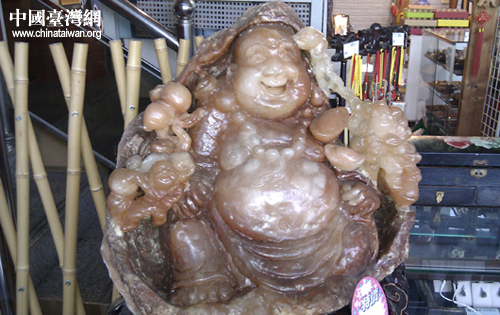 黃玉彌勒佛,主招財。老板說,這是他們賣得最好的藝品之一。
