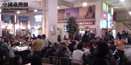 高速公路休息站內的餐廳,春節假期人潮爆滿。