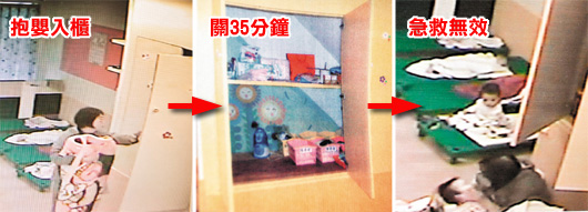 保母張翊玟疑因鄭姓女嬰哭鬧,將她關在置物柜35分鐘,發現女嬰沒有氣息時趕緊急救,但已無法挽回性命。(圖片來源:臺灣《聯合報》)