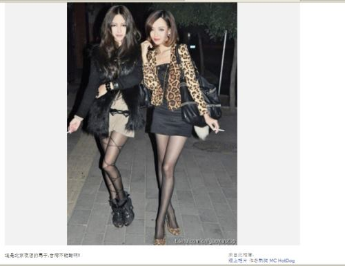 中國臺灣網2月23日消息 據臺灣“今日新聞網”報道,臺灣正妹(美女)滿街都是,但臺灣饒舌歌手“MC HotDog”(熱狗)近日在臉書中上傳了一張在北京夜店拍的辣妹照片,竟讓臺灣網友齊喊“臺灣輸了”。照片中的2名身材高挑的美女不僅臉蛋標致漂亮,更令人驚艷的是,她們黑絲襪底下的修長美腿簡直是無懈可擊。