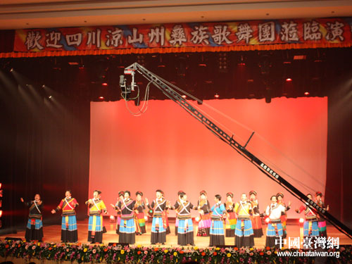 臺灣中天電視臺在苗栗縣對演出進行實況轉(zhuǎn)播錄制。圖片來源:四川省臺辦