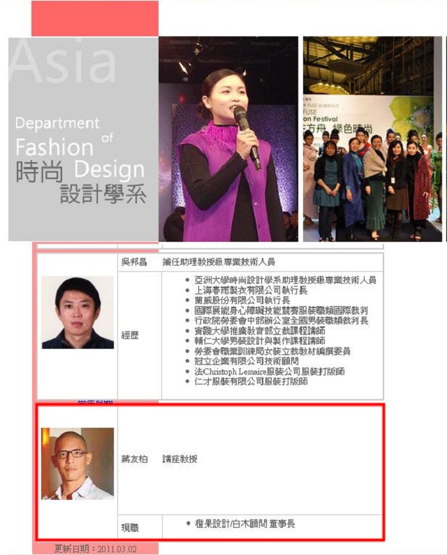 臺灣亞洲大學網站上已更新蔣友柏為新任客座教授(紅框處)。翻攝網絡